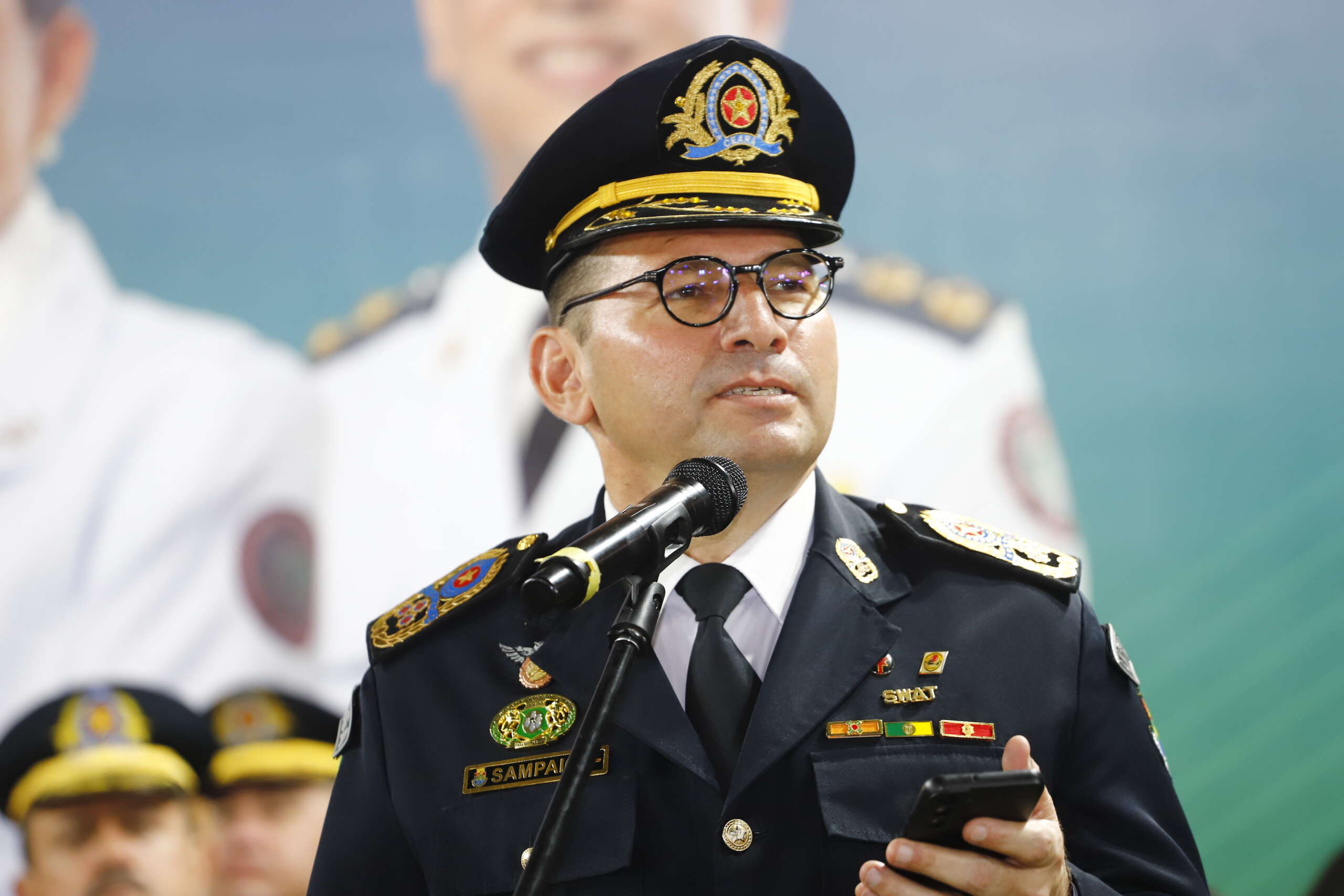 “É uma alegria, honra, orgulho estar aqui no Crato em um momento tão importante para vocês. Eu cresci vendo o desalento de um militar que certamente iria se aposentar sem nenhuma promoção. Como deputado, tive a felicidade de ajudar Camilo Santana para fazer a atual Lei das Promoções. É importante que essa cerimônia aconteça aqui no Cariri, pois essa conquista é de cada um de vocês, mas também de seus familiares. Muitos aqui, com décadas em suas corporações, precisam saber: o dia de hoje é um reconhecimento legítimo para vocês. Meus parabéns e muito obrigado em nome do povo cearense”, destacou o governador Elmano de Freitas.